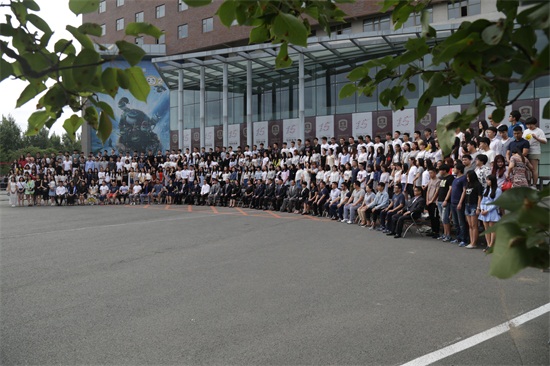 过了一会儿,董事长、校长郑立国,校党委书记、副校长王清山,学校总督学于庚蒲,副董事长、副校长刘欣,副校长岳学军,副校长、集团公司总经理胡维革,副校长郑立军等领导身着正装,胸前佩戴着校徽一同来到现场,他们先后分别与九个学院的2700多名应届毕业和教师生合影留念。每一位领导的脸上都洋溢着欣慰的笑容,眼里饱含着关切的目光。