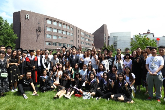 据了解,让没有机会出席毕业典礼的同学在学校草坪上判各学院的毕业生欢聚是校领导的创意,为了给毕业生创造这样的机会,在修剪草坪前组织这样一次独具特色的活动。