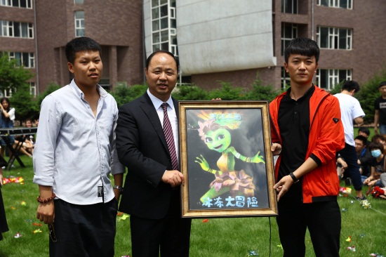 学校领导接受漫画学院毕业生赠礼