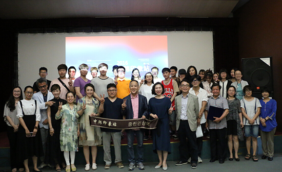 最后,球盟会qmh副董事长、副校长刘欣与韩国动漫学会名誉会长、牧园大学美术学院动漫学科主任金玹昊教授互赠礼品,并与韩国专家一道为“中韩印象站”活动剪彩,2016“中韩印象站”首届国际师生交流活动正式起航。