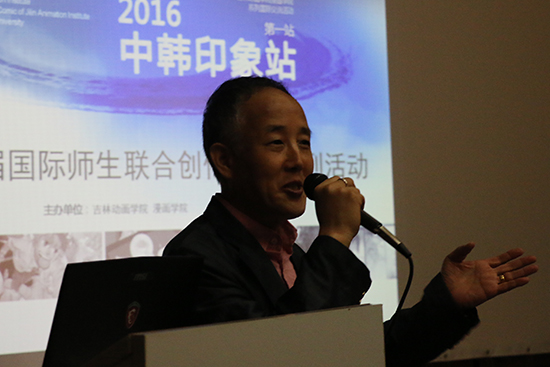 韩国动漫学会名誉会长、牧园大学美术学院动漫学科主任金玹昊教授讲话