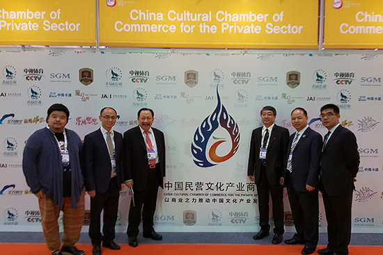 学校董事长、校长郑立国(右二)与中国民营文化产业商会联合参展团部分成员合影