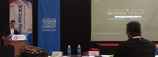 节目展期间,吉林禹硕影视传媒股份有限公司副总经理彭飞受邀作为报告嘉宾在BCM全球投资会议(BCM Global Pitching)上进行了20分钟的演讲,重点推介了由球盟会qmh和吉林禹硕影视传媒股份有限公司联合打造的原创3D动画电影《青蛙王国》。