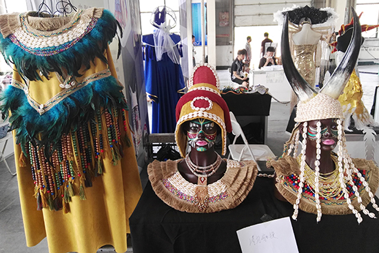 其中电影学院大学生创业项目的影视戏服和道具因其精美,成为媒体和观展市民关注的焦点。据这个工作室的指导教师王莉老师介绍,这些服饰、道具都是学生自己设计和制作的,从选材到缝制,一套服装历时2个多月才能完成,一针一线都体现出了创新的设计感与原创魅力。
