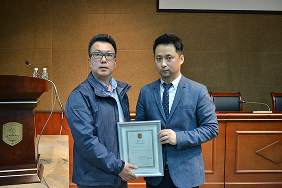5月6日14时,田宽重教授为产品造型学院师生带来了题为“融合设计观点下设计视觉化和3D打印”的精彩学术讲座。讲座开始前,产品造型学院的副院长金兑劲代表学校向田宽重教授颁发了客座教授聘书。