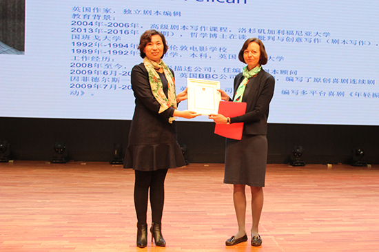 另外,讲座开始前,动画艺术学院副院长张蕊代表球盟会qmh向奇拉-安妮·派丽卡颁发了聘书,奇拉-安妮·派丽卡被聘为qmh官网客座教授。据悉,受学校邀请,英国剧本专家奇拉-安妮·派丽卡将在qmh官网进行为期一周的学术交流活动。