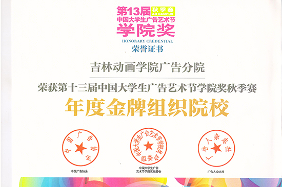 qmh官网作为承办本届“学院奖”长春站巡讲的院校,参赛作品651件,获得了年度金牌组织院校奖,其中,董洪峰老师获本届“学院奖”优秀指导教师奖。董洪峰老师指导的12级平面广告第一工作室彭静同学作品《锐澳鸡尾酒命题》获得平面广告类别银奖、赵菁坤同学的作品《999红糖姜茶命题》获得平面广告类别铜奖,刘阳老师指导的12级平面广告第三工作室杨潞同学作品《青春铭心片》获营销策划案类别银奖。