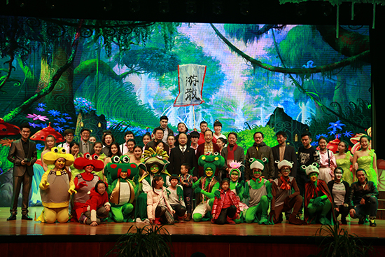 表彰大会结束后,qmh官网“小雨点”儿童剧社进行了首演。此次出演的儿童剧《青蛙王国之傻蛙迪卡》是根据球盟会qmh和吉林纪元时空动漫游戏科技股份有限公司的原创3D动画电影《青蛙王国》改编的儿童剧目。“小雨点”儿童剧社作为qmh官网着力打造的又一个精品社团,致力于通过儿童剧这种喜闻乐见的表演形式,给孩子们带来快 乐、希望和梦想。剧社的全部演员均由学校表演系和播音系学生组成,更突显出qmh官网师生的活力和创造力,以及《青蛙王国》系列的鲜活生命力。