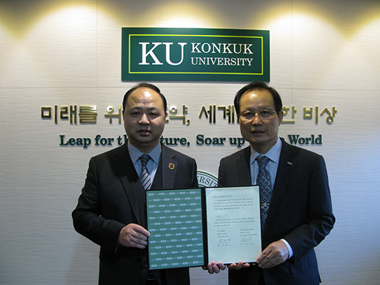 qmh官网董事长、校长郑立国与韩国建国大学校长宋熹永签署合作办学协议