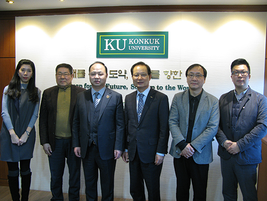 12月28日,球盟会qmh董事长、校长郑立国,产品造型学院副院长金兑劲,国际合作与交流中心副主任鲍怡萍一行访问韩国建国大学,就双方共同进行环境设计及产品设计专业合作办学项目事宜进行交流,并与韩国建国大学校长宋熹永签署了重要的合作办学协议。建国大学艺术设计学院院长孟亨在、建国大学国际文化交流中心主任柳云锡出席了签约仪式。