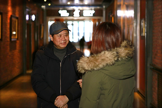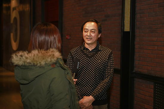 《国酒》导演、球盟会qmh电影学院院长宋江波接受采访(高雪松 摄)