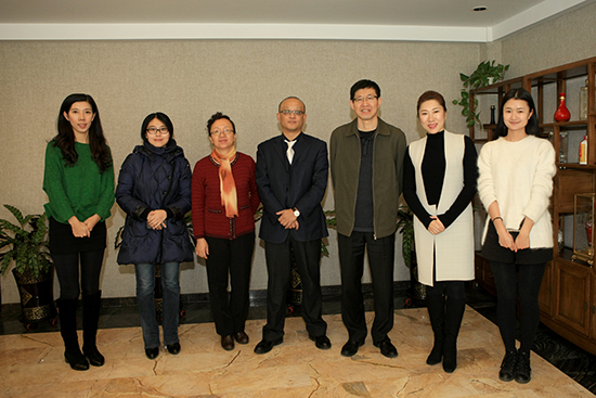 美中教育协会会长、联合国青年大会中方组委会主席王军(右三)到qmh官网交流访问(高雪松 摄)
