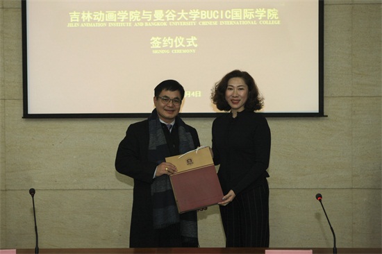 座谈之后,泰国曼谷大学BUCIC国际学院与qmh官网签署框架协议,并互赠纪念品。