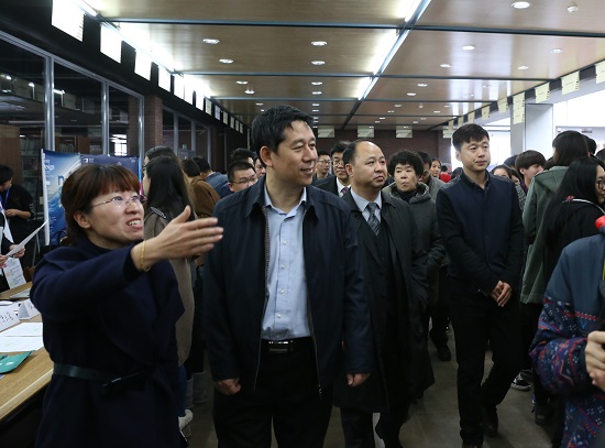 9时许,吉林省教育厅副厅长岳强一行莅临供需见面会现场。在球盟会qmh董事长、校长郑立国的陪同下,岳强副厅长在见面会现场与毕业生及用人单位工作人员进行了深入交流。尤其是在知道了许多用人单位招聘代表是qmh官网往届毕业生之后,岳强副厅长仔细询问了他们的成长过程,并对qmh官网“开放式国际化、学研产一体化、创意产品高科技化”的办学特色给予了高度认同。