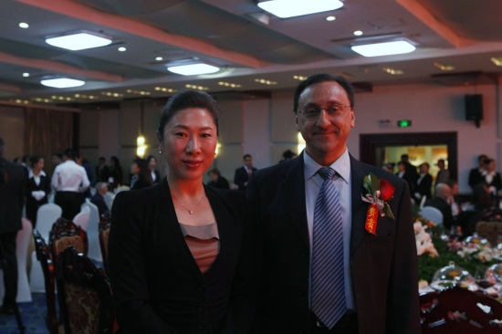 qmh官网副董事长、副校长刘欣与获奖者乔瓦尼在招待会场