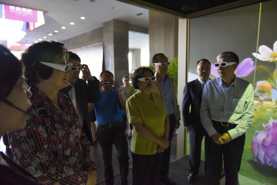参观完学生作品之后,调研组参观了学校多维沉浸式立体CAVE系统展厅,并观看了学校原创4D动画短片《生命之种》。不少调研组专家惊叹于一个艺术类高等院校,竟然可以创作出如此高技术的产品,将艺术与技术有效结合,实在是很难得。