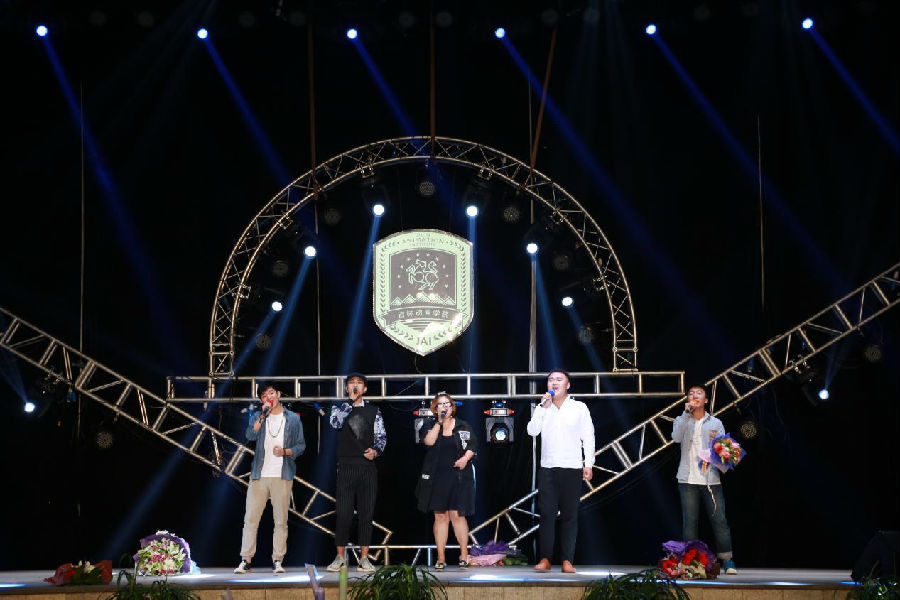 历届校园十佳歌手石浩钰、仲祥成、明庭伟、王野倾情助阵,伴随着歌曲串烧《闪耀明天》,2015迎新生大型文艺晚会顺利落下帷幕。