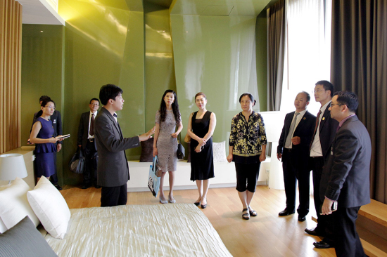 曼谷大学代表向郑立国董事长、校长介绍校园环境