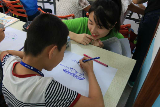 孩子们在实践团队志愿者们的帮助下完成了各自的作品