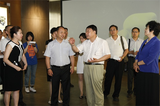 董事长、校长郑立国首先向调研组介绍了学校高新、双阳2个校区的规模和建设情况,并带调研组参观了学校产业大厦一楼的学生优秀作品展。