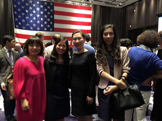 副董事长、副校长刘欣,国际合作与交流中心副主任鲍怡萍与美国驻沈阳总领事馆副新闻文化领事东方贤惠、文化助理于珕合影