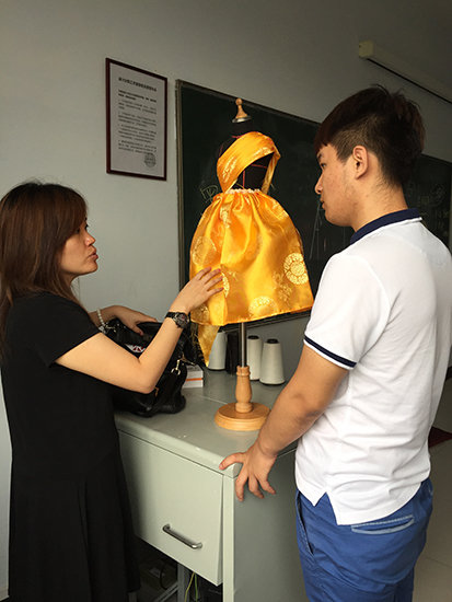 随后的三天时间里,刘老师对服装与服饰设计专业的学生进行了课程辅导,她跟随上课班级一起,亲手辅导学生们做设计作品。学生们提出了很多专业上的问题,刘老师带着他们动手做、动脑想,并给他们看了新加坡学生的作品,告诉他们如何做好一个完整的设计作品,其中她最强调的是灵感来源及设计草图,她告诉学生们,好的设计作品,一定要有一个清晰的构思,随着这个思路,你才能不偏离方向的做好你的设计。服装与服饰设计系的学生们受到鼓舞,在随后的作品完成过程中,都按照刘老师的建议进行了更改,也都达到了自己的心里预期效果,每个人都自己的作品都很满意。