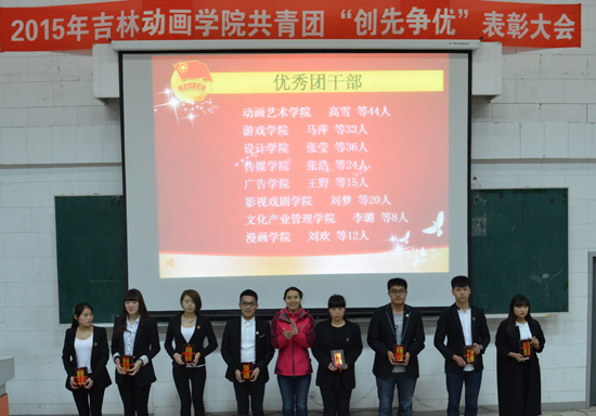 校团委副书记刘博首先宣读了2014年度长春市“创先争优”表彰决定和2014年共青团“创先争优”表彰决定。