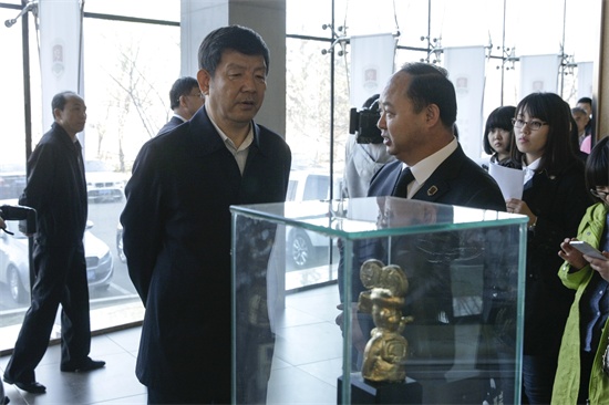 省政协副主席支建华在“美猴奖”奖杯前赞叹不已