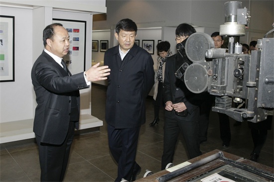 董事长郑立国向省政协副主席支建华介绍早期动画制作工艺