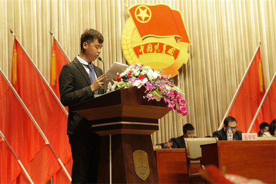 共青团吉林省委副书记牟大鹏在开幕式上致辞,他首先肯定了球盟会qmh团委及全校师生过去几年的不懈努力,代表团省委向球盟会qmh团组织提出三点建议:一是要深入学习贯彻习近平总书记重要讲话精神,切实增强做好新时期共青团工作的责任感和紧迫感,严格按照“四个全面”战略布局的要求,找准团组织的自身定位,谋划好新时期团的各项工作;二是要夯实基层基础,不断提升组织活力和工作覆盖,切实把团的阵地建设好,堡垒作用发挥好;三是要主动适应新常态,团结引领广大团员青年积极为长春经济发展做贡献,密切关注青年思想动态,激发青年创业热情,引领青年创新发展,解决青年生产生活困难。