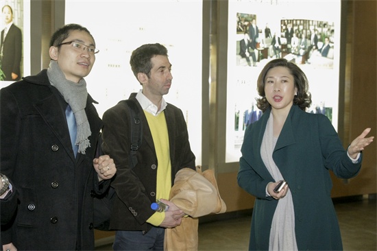 在副董事长、副院长刘欣的陪同下,客人观看了学院理念片及3D电影《青蛙运动会》,并参观了学院的校史馆和动漫游戏博物馆。