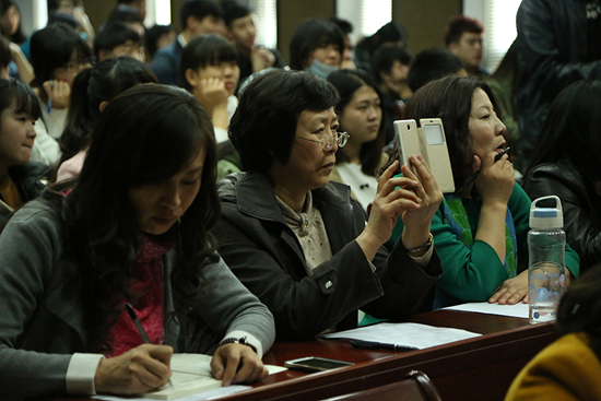 广告学院胡镜泉院长主持本场讲座,他幽默地测试了赖致宇先生的人气,现场慕名来聆听讲座的同学们挤满了报告厅。胡院长介绍了广告学院2015年学术讲座的交流安排,一线一流4A广告公司创意人、制作人将带来最新的行业讯息,学生参与实习、实战的机会也将接踵而来。