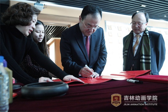 影视戏剧分院院长李伟华、吉林禹硕影视传媒股份有限公司副总经理彭飞、王福全,国际合作与交流中心副主任鲍怡萍等出席了本次洽谈。