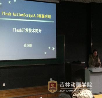 数字媒体技术系孙沫丽老师在报告中,根据当今Flash被广泛应用的这个现状出发,谈及Flash开发技术,并对Action Script 3.0语言特点及编程等内容以幽默形象的比喻讲述出来,使那看似复杂的一段段编程,也突然变得可以沟通和交流。