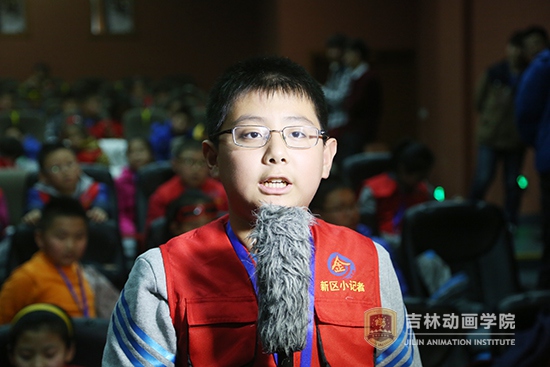 在对吉林禹硕动漫游戏科技股份有限公司原创3D电影《青蛙王国2》主创人员的采访环节中,小记者们对该动画的制作技巧和青蛙王国的创作灵感等积极的进行了提问采访,吉林禹硕动漫游戏科技股份有限公司副总经理谭皓月、彭飞,艺术总监肖毅,用通俗易通又幽默风趣的语言,将孩子们带进了梦想的动画世界。可爱天真的孩子们满怀对动画制作的求知与渴望,一个又一个的问题带动了全场的热烈氛围。