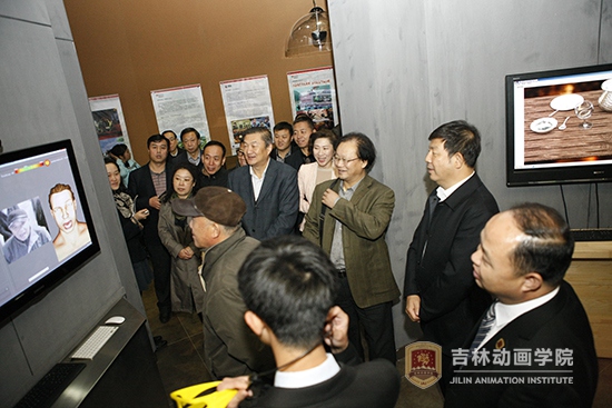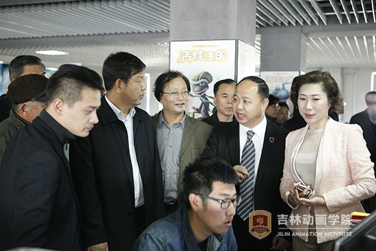 支建华副主席一行先后参观了球盟会qmh展览馆、4D环幕放映厅、国际动漫游戏博物馆,动画研究院展厅,动画沙龙主题展,多维沉浸式立体CAVE系统展示,并深入吉林禹硕公司,与生产创作人员亲切交流,详细了解了动画生产创作情况。