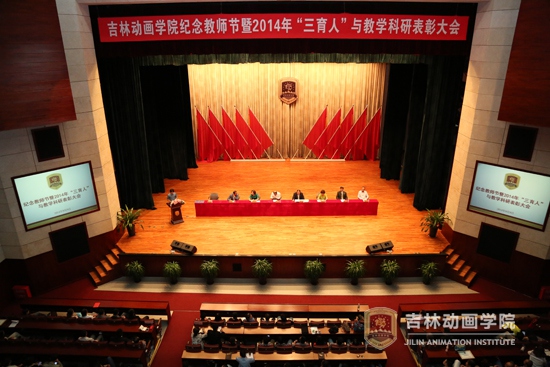 学院党委副书记、副院长岳学军宣读了关于表彰2014年“三育人”先进集体、先进个人的决定,设计分院等5个处级单位先进集体、动漫分院学工办等8个教学系统科级单位先进集体、李秋山等5名“三育人”标兵和高冰等49名先进个人的决定。