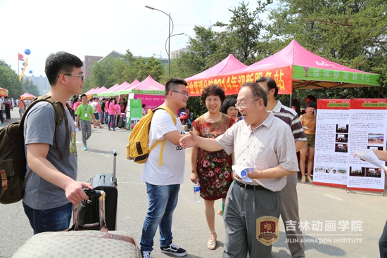 院长于庚蒲、副院长朱莉、副院长岳学军和新生家长亲切交流