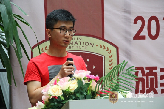 动漫分院2010级岳金熙,作为优秀项目负责人代表发言:“在大学我们用实际行动把我们的青春之花在最恰当的时间以一种骄傲的姿态尽情的绽放。我看到的是我们90后青春的活力和90后团队们对心中梦想的坚持不懈,如今的成绩告诉了大家我们90后也能挑起大梁,成为当今社会有用之才。”