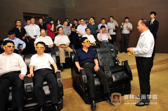 在环幕电影厅,巴音朝鲁省长一行观看了4D动画短片《青蛙运动会》,对影片的技术水平和艺术魅力给予了高度称赞。
