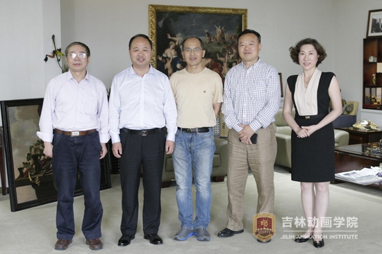 董事长郑立国、副董事长刘欣、游戏分院院长潘志庚与肖永亮副院长、谭力勤教授合影 王德雨摄