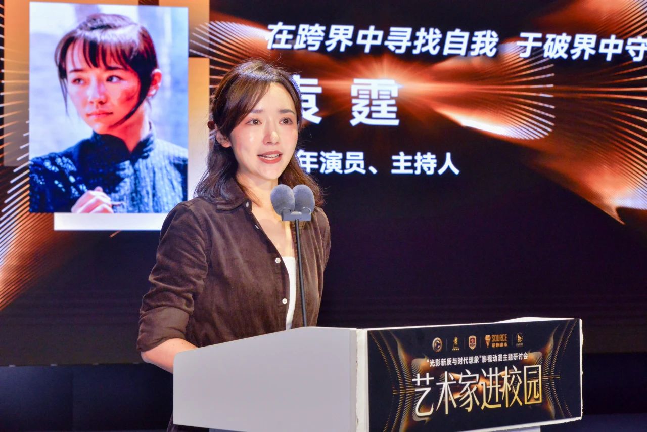 袁霆分享了从主持到表演的跨界经历,传递了对艺术的敬畏与热爱。她认为,跨界是“双向成长”,主持教会她用语言沟通、用真诚连接,表演让她深入生命与故事。在讲述调入上海电影集团近距离感受到前辈们“戏比天大”的精神,她表示,无论是台前幕后,始终追求的不过是“真诚讲好每一个故事,温暖打动每一颗真心”。在谈及学习习近平总书记回信的体会时,她寄语学生们,前辈艺术家的德艺双馨,藏在对细节的较真里。我们的成长,藏在对初心的坚守中。她说,“艺术之路从不是独行,需要勇气、专注,更需要用敬畏之心扎根,用真诚之心绽放”。