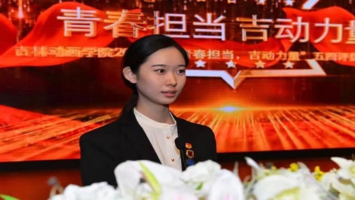 漫画学院赵允熙作为吉林省优秀学生干部代表发表了获奖感言,她说,最重要的不是取得荣誉的瞬间,而是奋斗的整个过程。在以后的日子里,她必将继续发扬“自尊自强,创新创造”的校训精神,尽职尽责地做好本职工作,认真完成学院交付的每一项任务,绝不辜负学校和老师的重托,带领广大学生青年不辱使命,发奋学习,努力成为社会主义建设者和接班人。